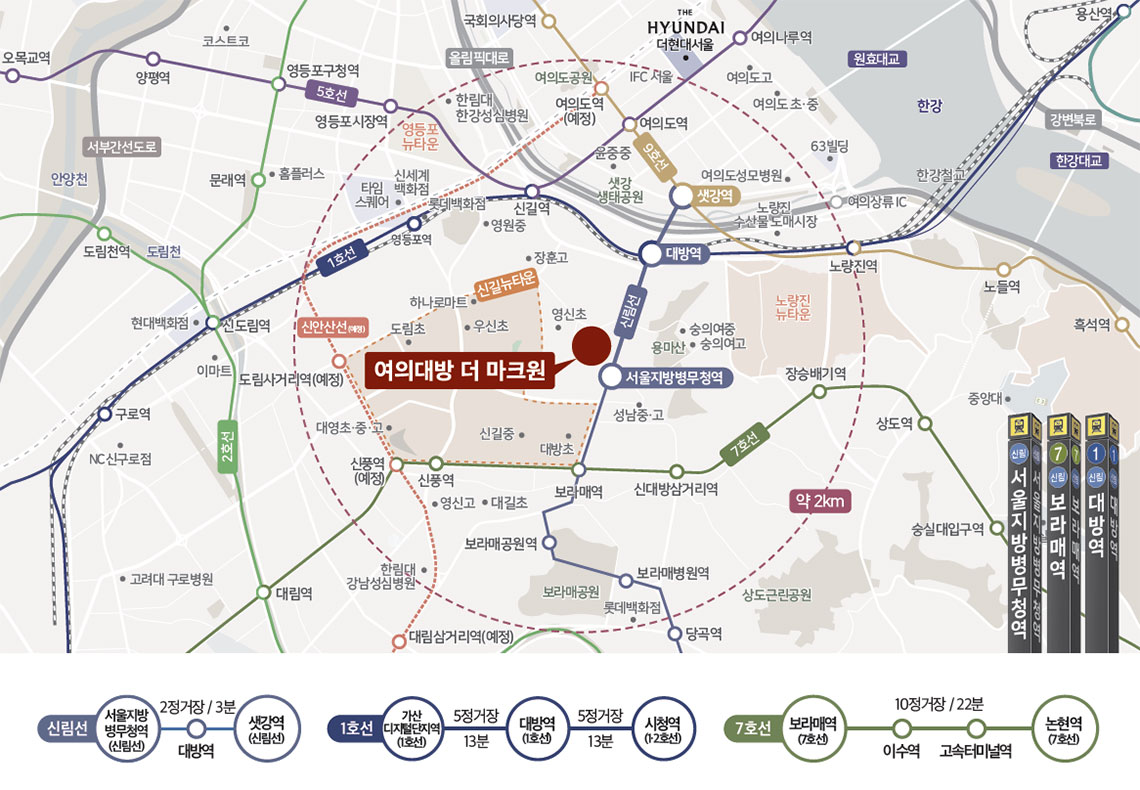 • 1호선 대방역, 7호선 보라매역(강남권역 20분대)까지 트리플역세권